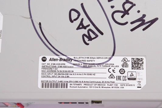 Allen Bradley 2198-H025-ERS / 2198H025ERS Ser A Servo Drive -For Parts or Repair
