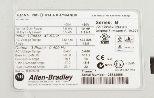 Allen Bradley 20B D 014 A 0 AYNAND0 / 20BD014A0AYNAND0 Drive For Parts or Repair
