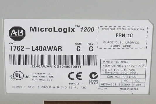 Allen Bradley MicroLogix 1200 1762-L40AWAR /C 40 Point Controller - Refurbished