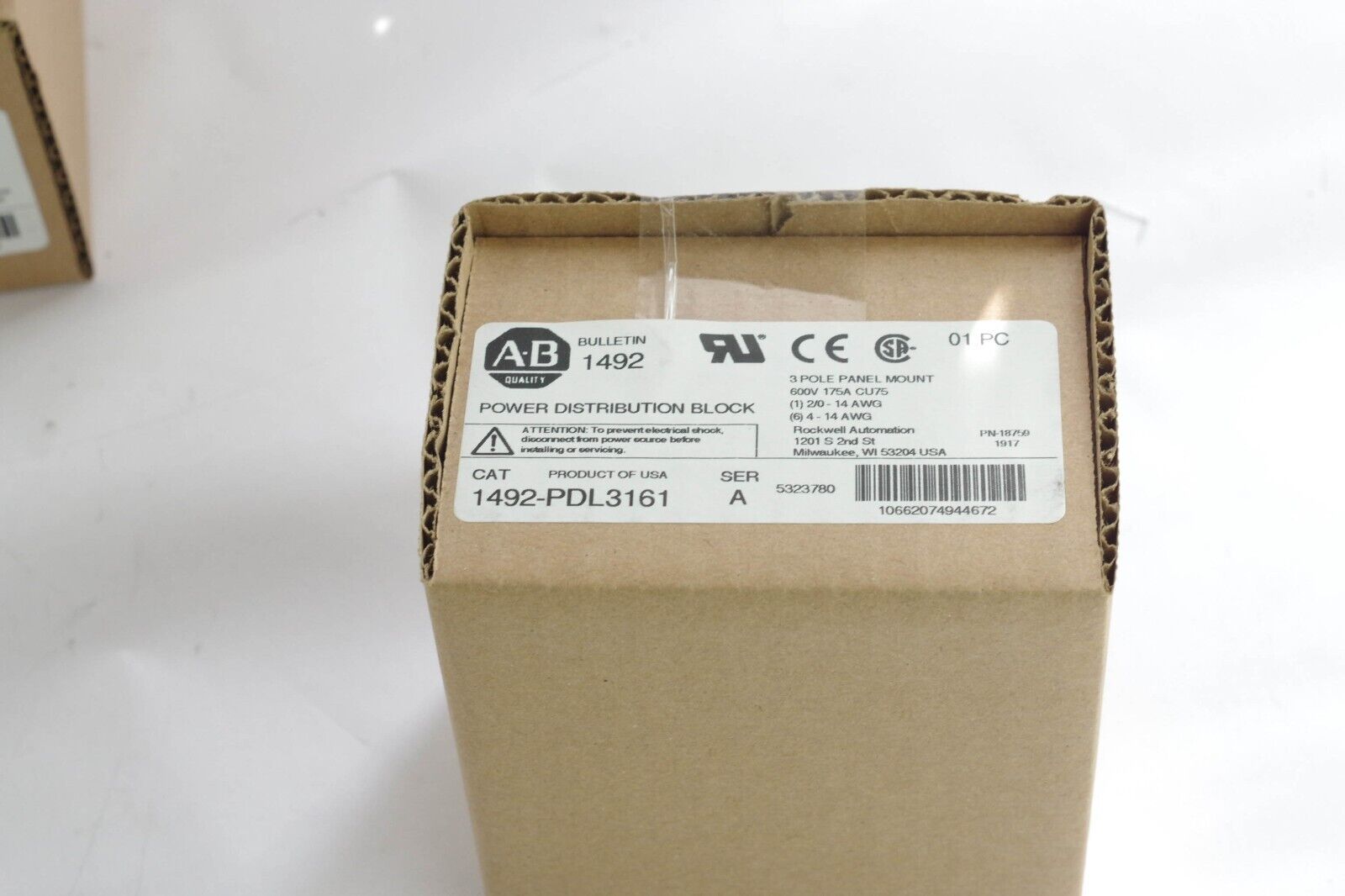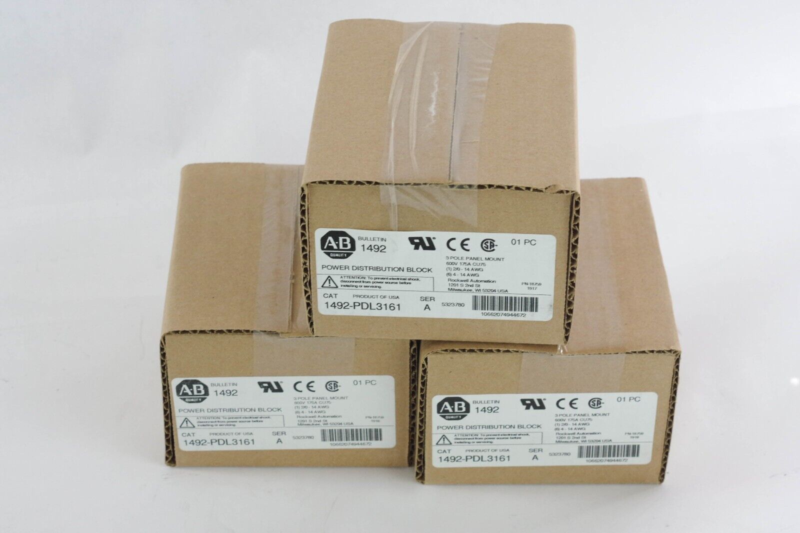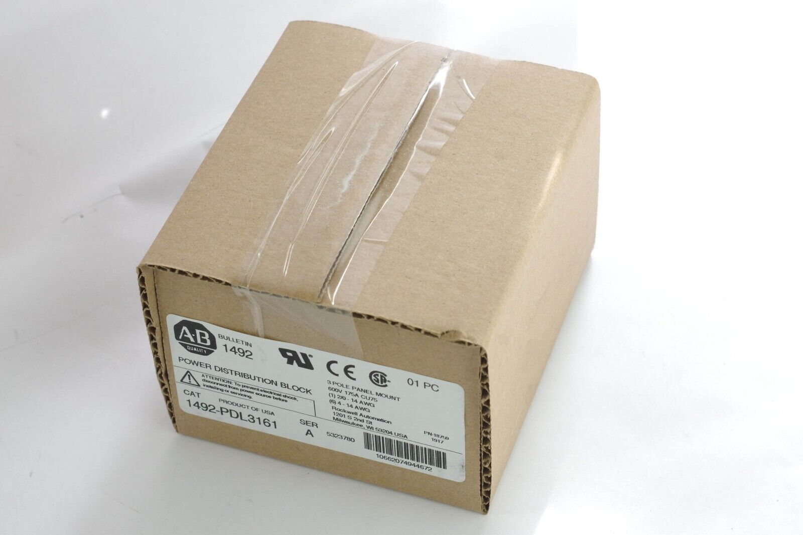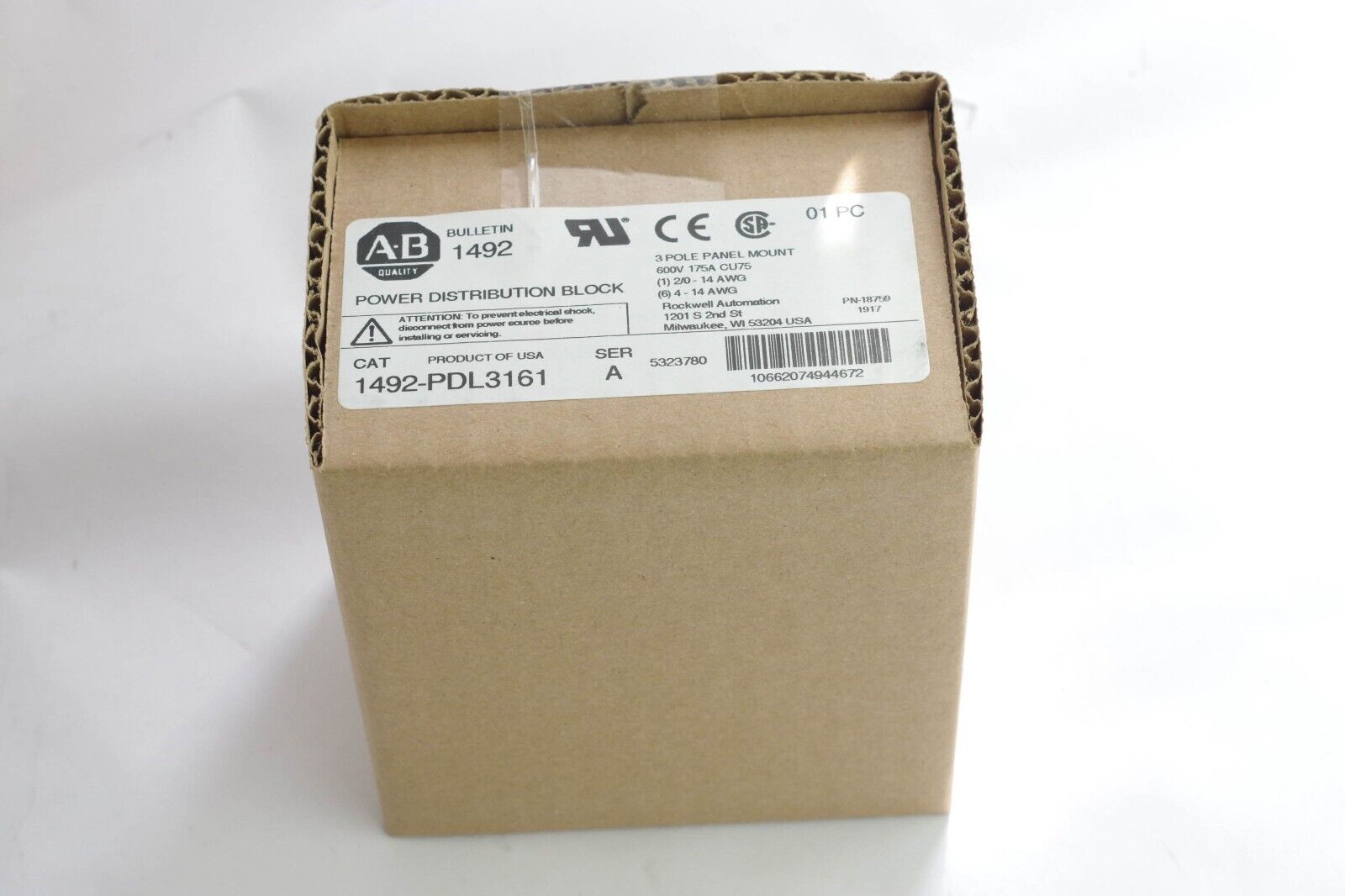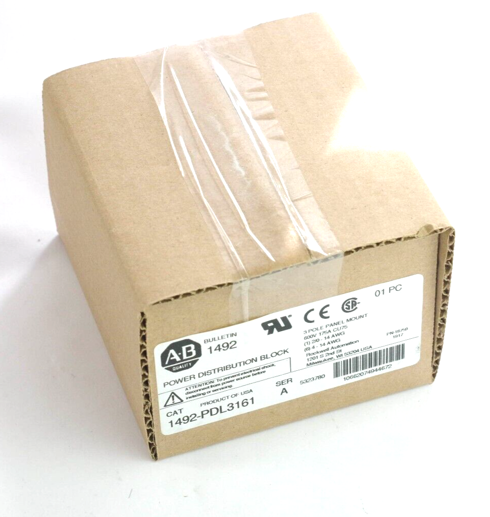 ALLEN BRADLEY 1492-PDL3161 POWER DISTRIBUTION BLOCK 3PH 600V 175A CU75 - Surplus