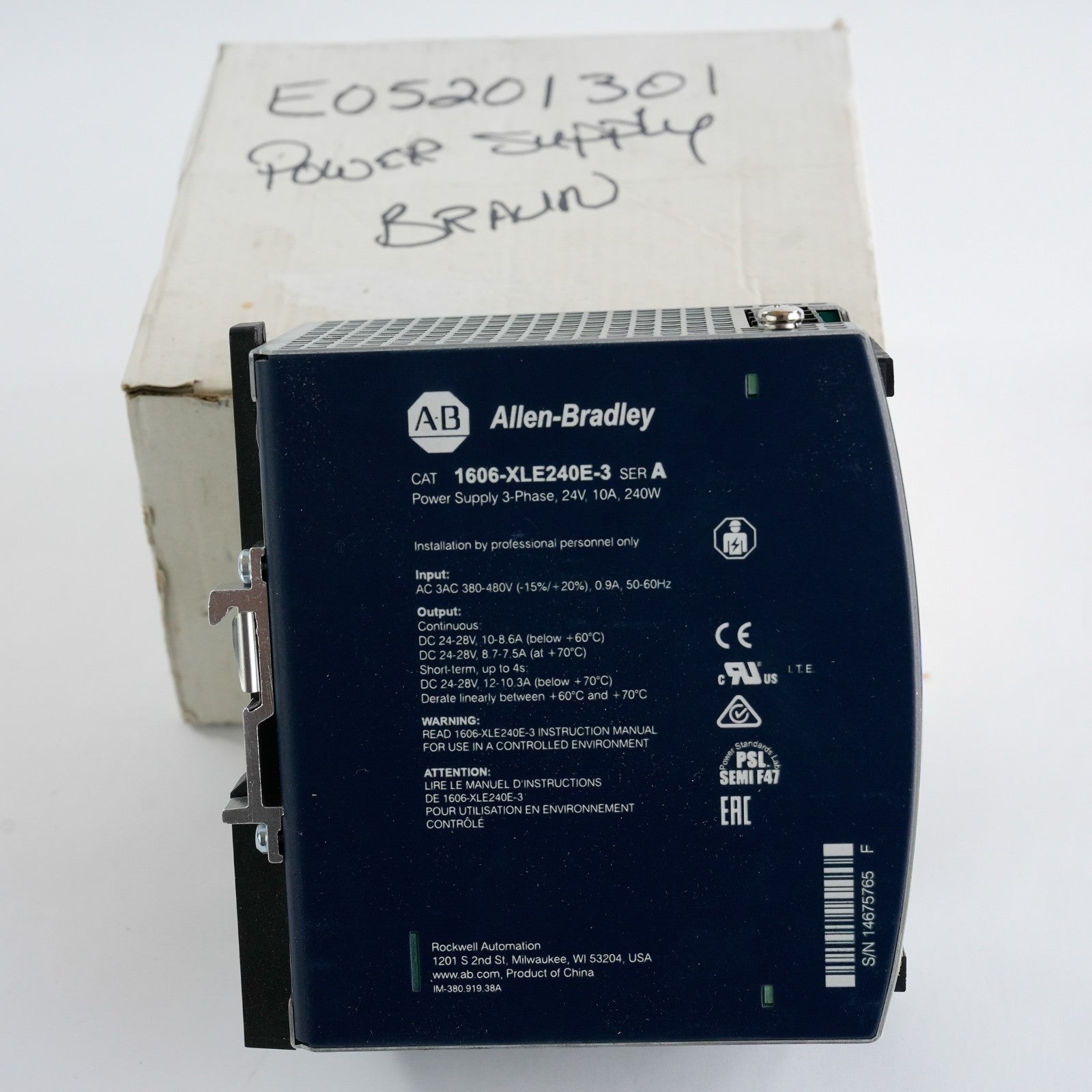 Allen Bradley 1606-XLE240E-3 /A Power Supply 3-Phase 24V 10A 240W - Open Box