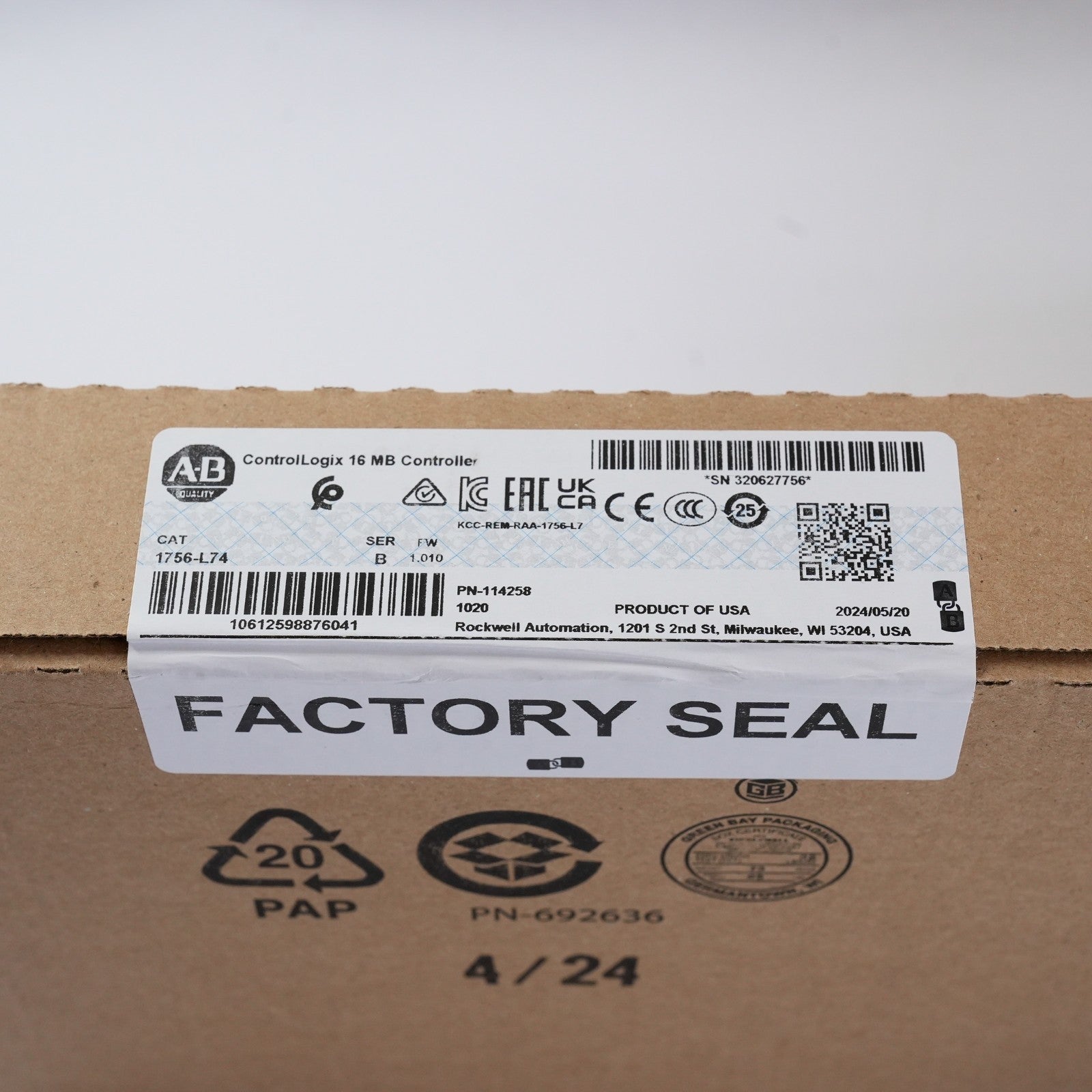 Allen Bradley 1756-L74 /B 16M ControlLogix 5574 Processor - 2024 Sealed Surplus