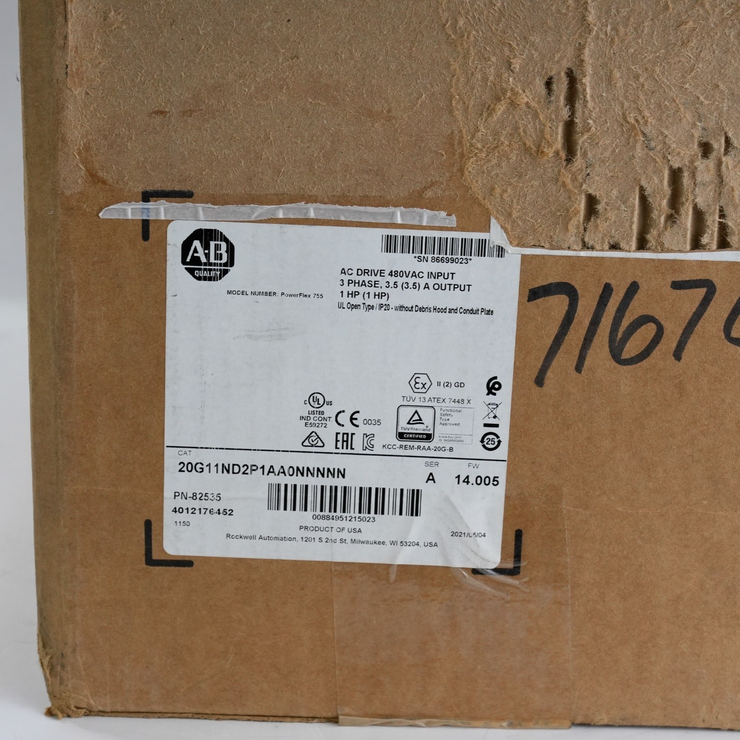 Allen Bradley 20G11ND2P1AA0NNNNN /A FW 14.005 PowerFlex 755 Drive - Open Box
