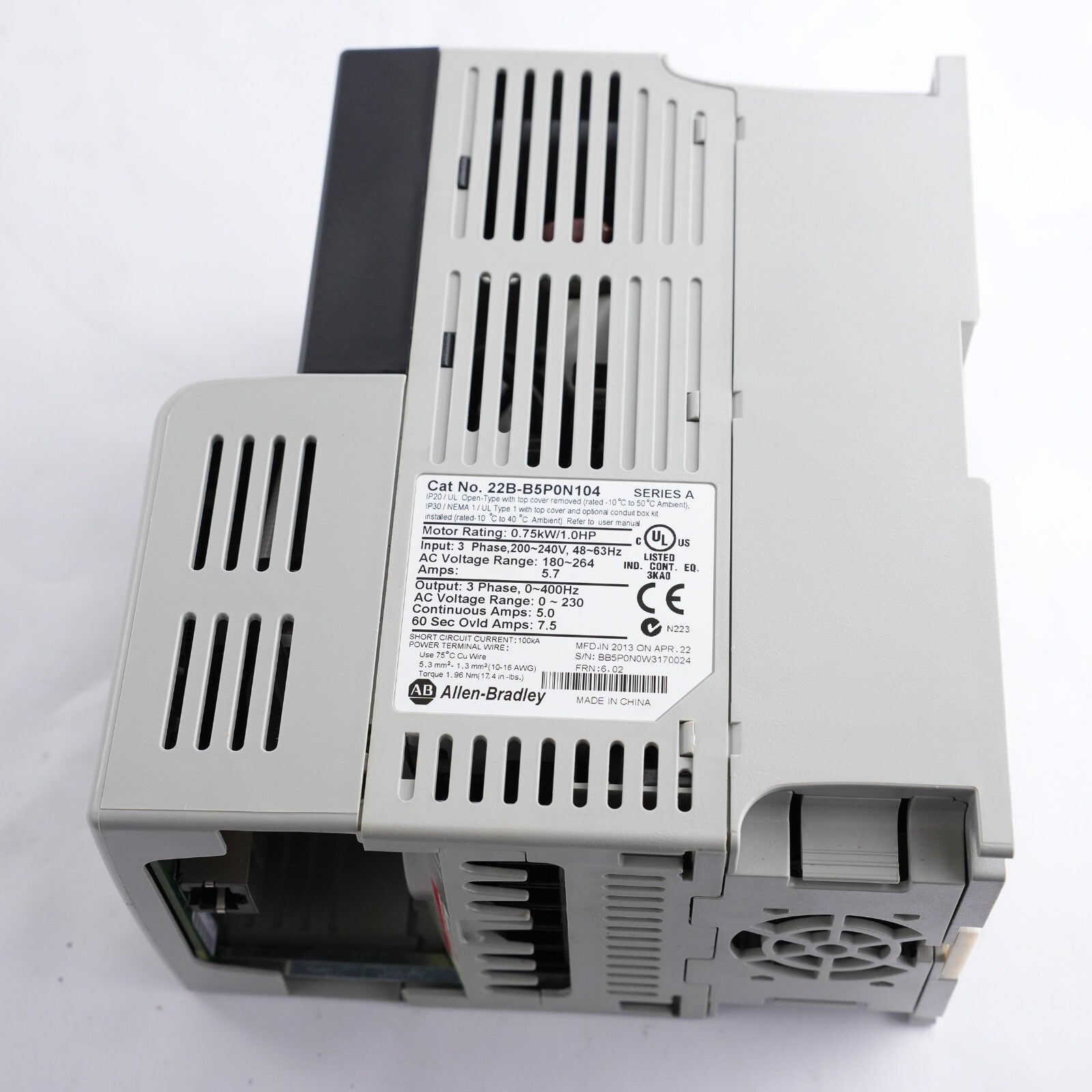 Allen Bradley 22B-B5P0N104 /A Powerflex 40 AC Drive 200-240V 48-63HZ 3PH 5.7A