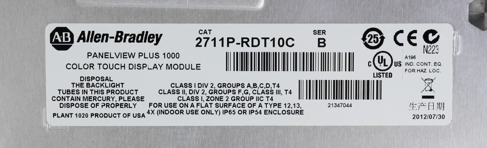 Allen Bradley 2711P-RDT10C /B PanelView Plus 1000 Color Touch Display Screen NOS