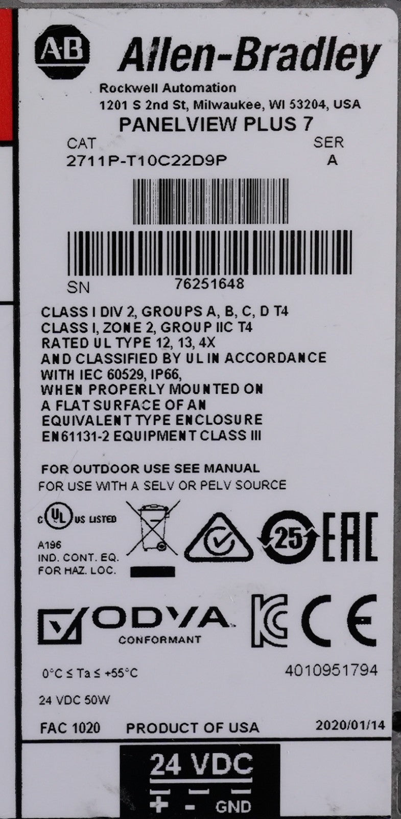 Allen Bradley 2711P-T10C22D9P /A PanelView Plus 7 Display Panel 2711PT10C22D9P