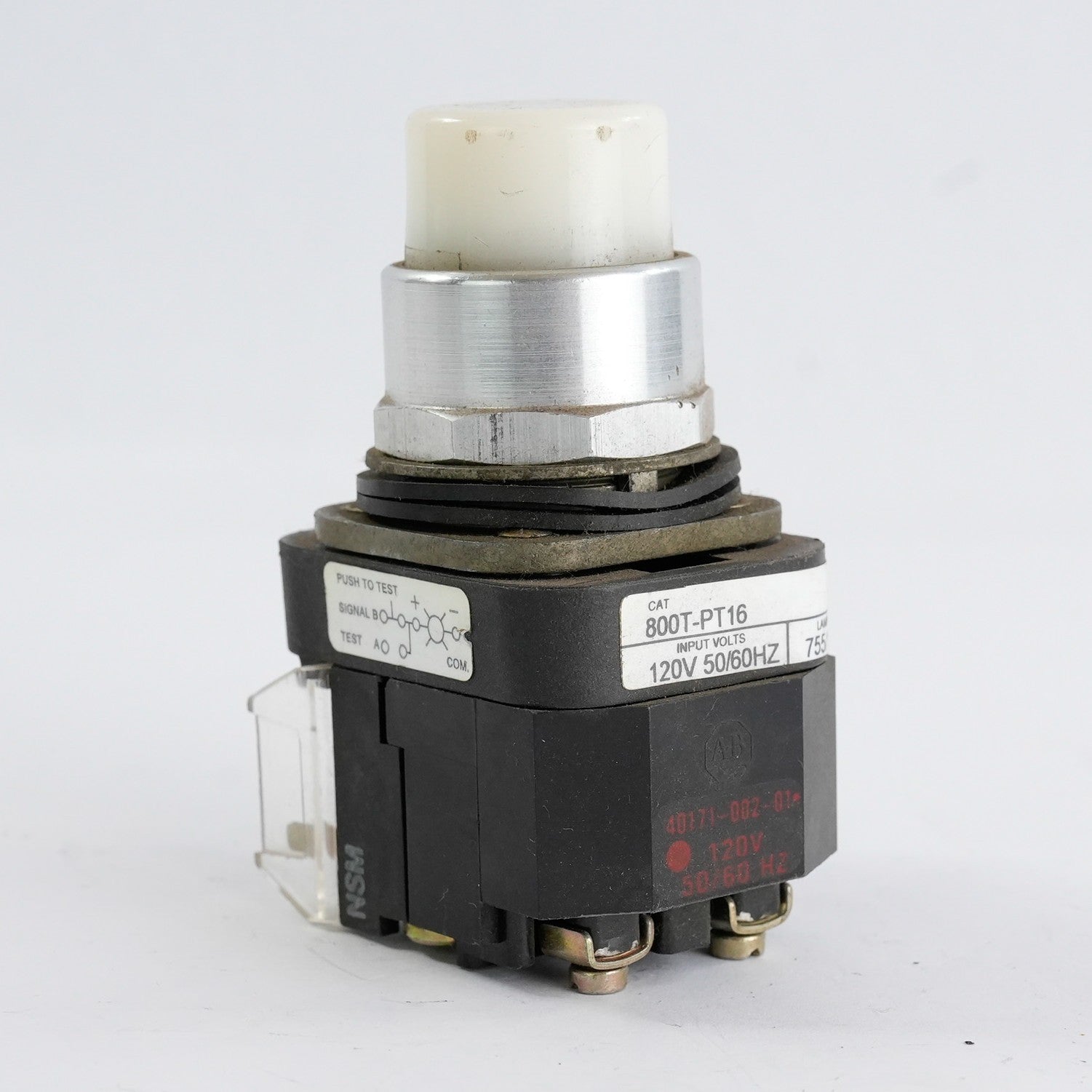 Allen Bradley 800T-PT16 /T White Pilot Light 120V 50/60Hz 800TPT16