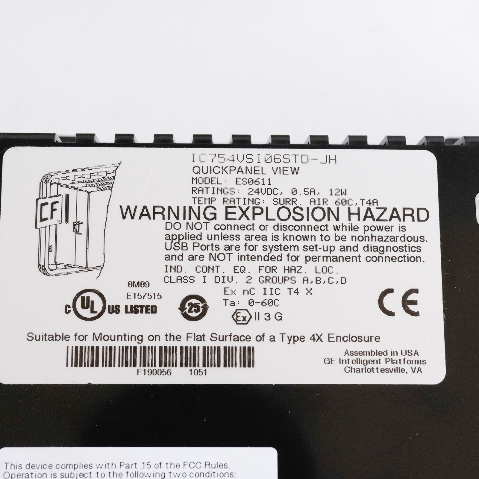 GE Fanuc ES0611 QuickPanel View 6" 24VDC 0.5A Control Panel