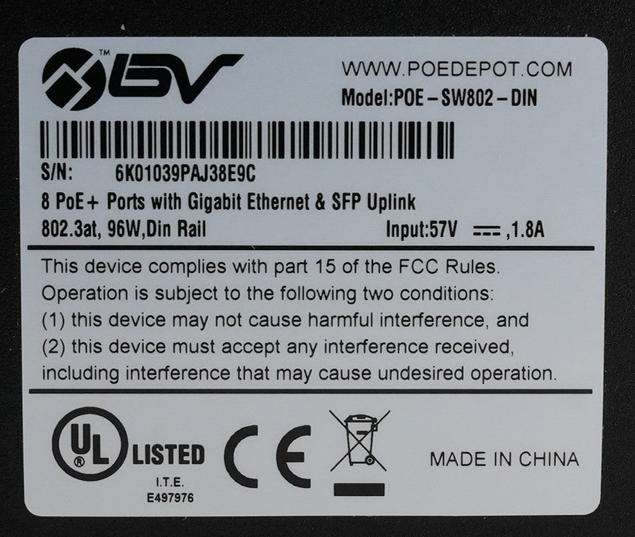 POE-SW802-DIN 8 Ports PoE + Ports with Gigabit Ethernet & SFP Uplink - Open Box
