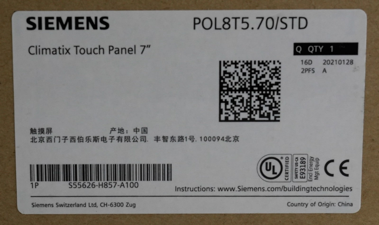 Siemens POL8T5.70/STD Climatix Handheld Touch Panel 7" S55626-H857-A100